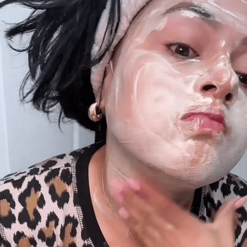 3. Aplica la espuma en la piel, enfocándote en zonas con manchas o acné.