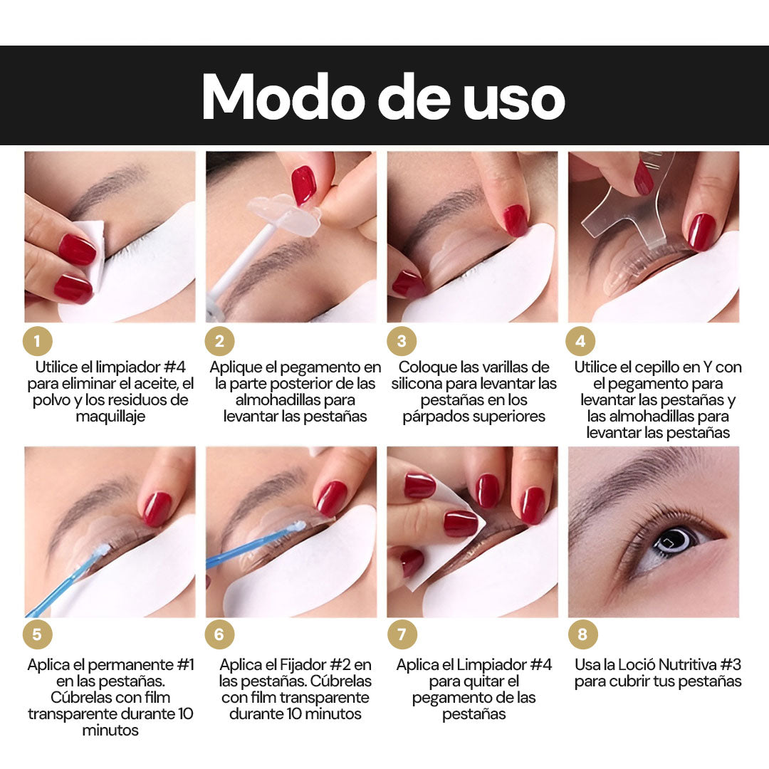 Sí, el kit está formulado con ingredientes suaves y seguros que no dañan tus pestañas. Además, incluye una loción nutritiva para mantenerlas hidratadas y saludables.