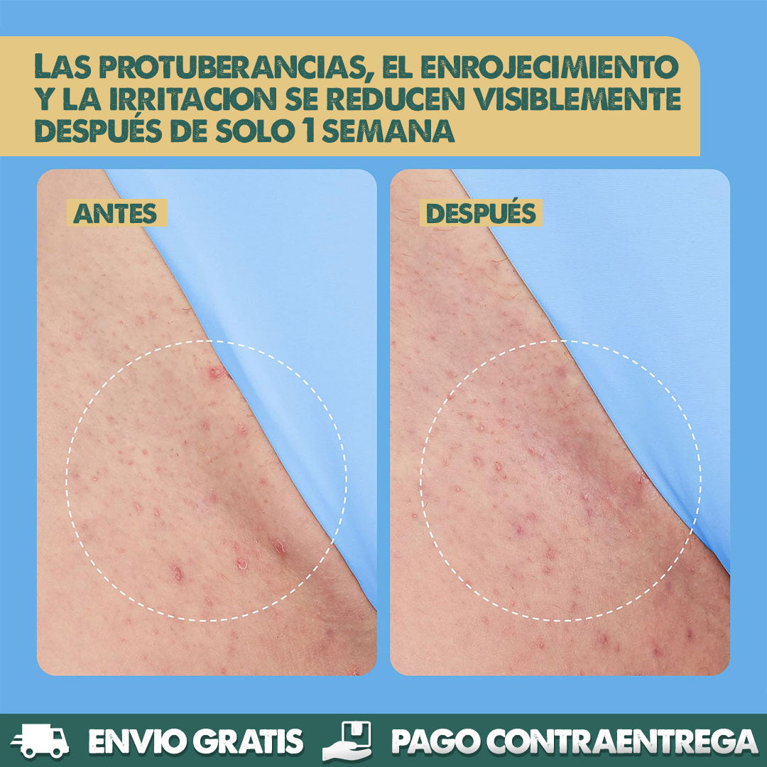Si tu piel se llena de puntitos rojos dolorosos, el sistema exfoliante multicapa evita que el vello quede atrapado. Libera, suaviza y previene nuevos encarnados