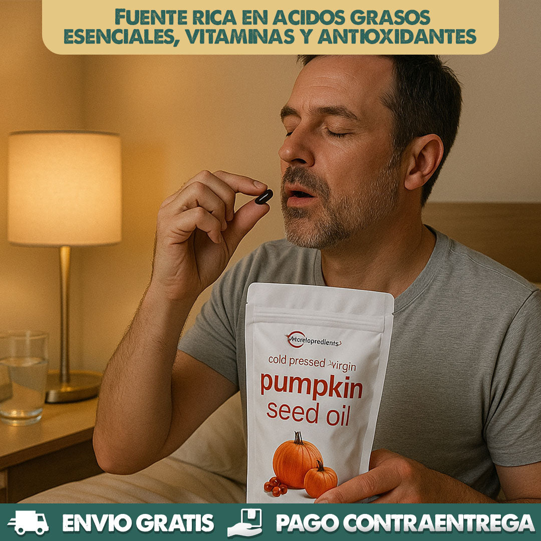 Apoya la salud de la próstata, mejora el control urinario y fortalece el cabello gracias a sus ácidos grasos esenciales y antioxidantes naturales.