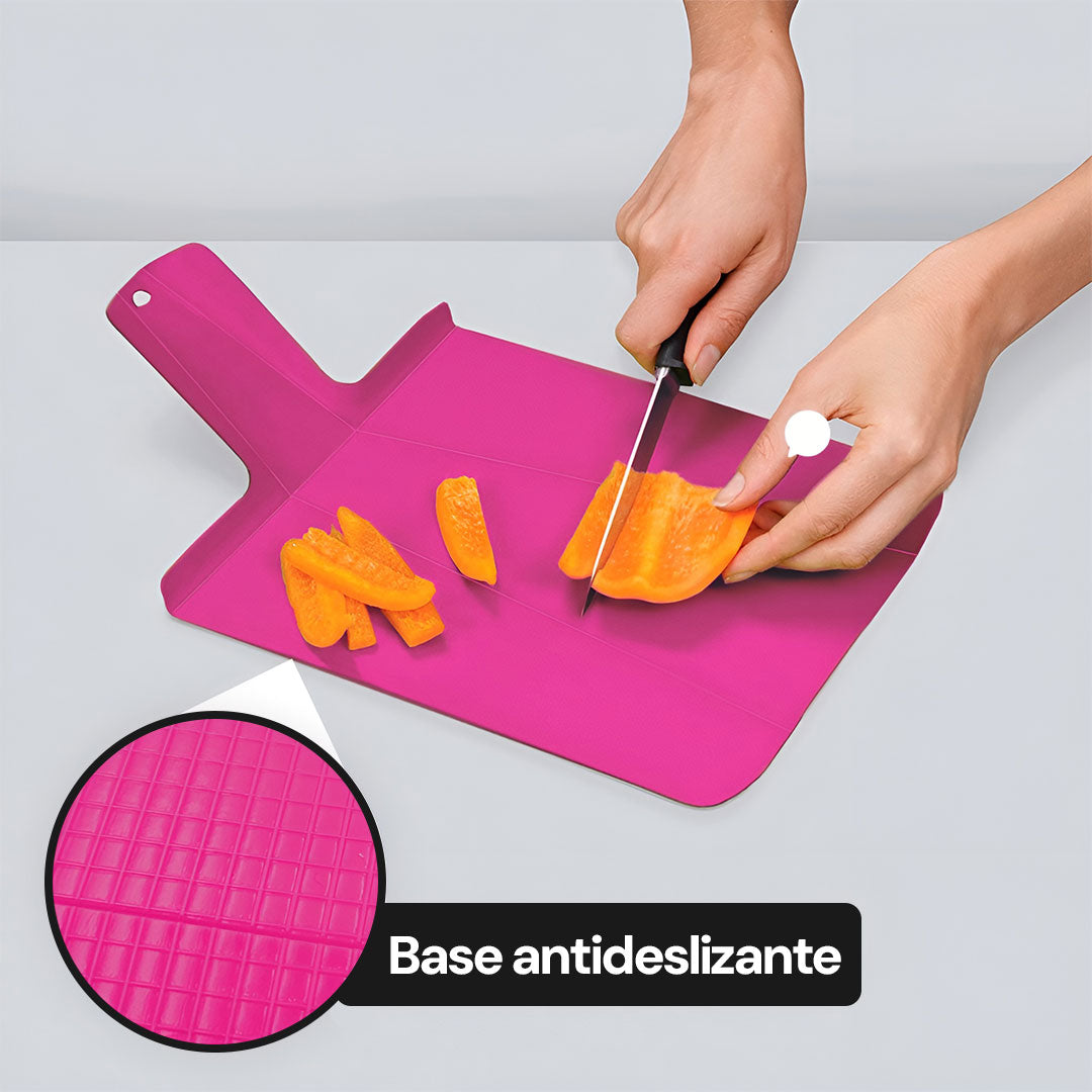 Es resistente, fácil de limpiar y ultra funcional. Su innovador diseño plegable facilita la transferencia de ingredientes sin ensuciar
