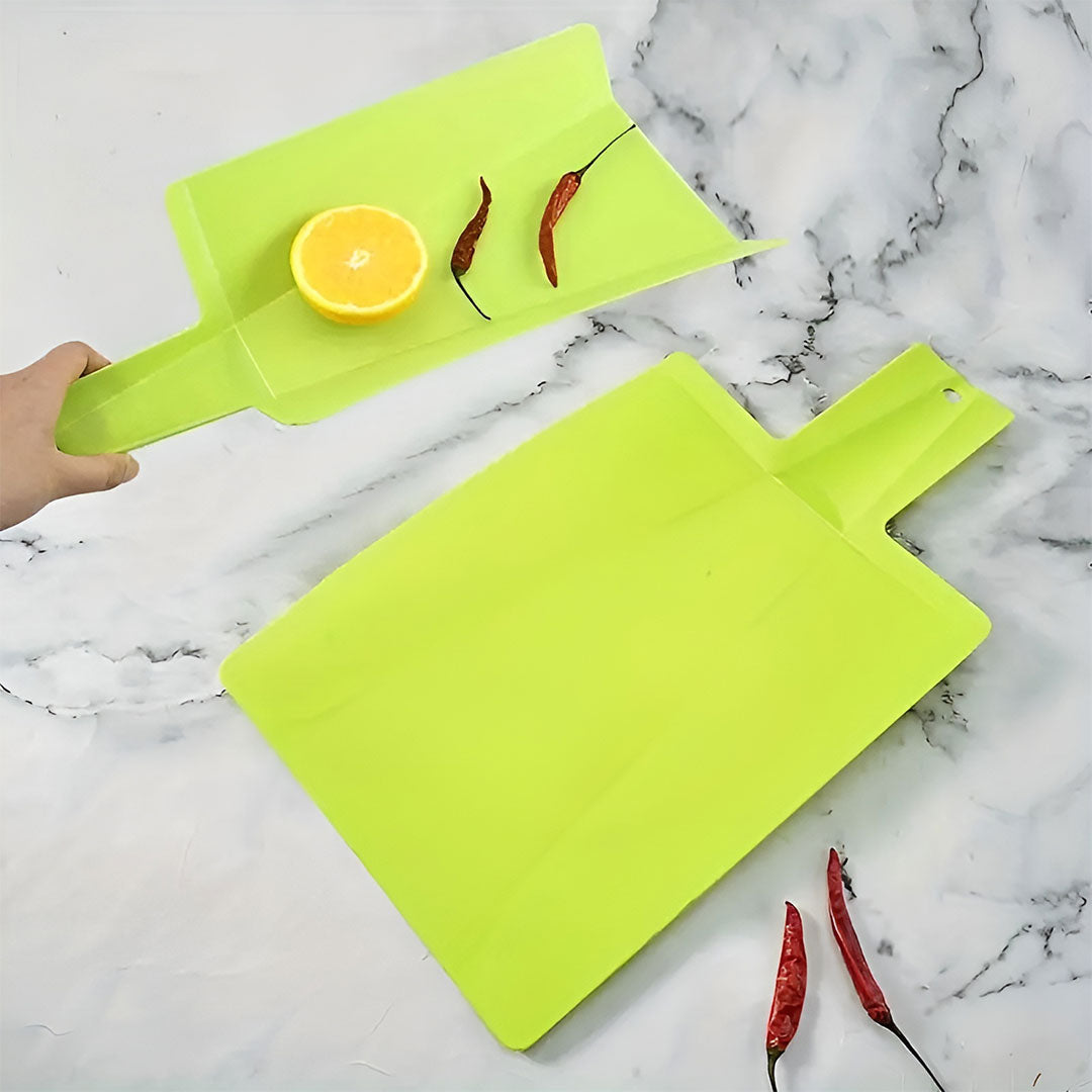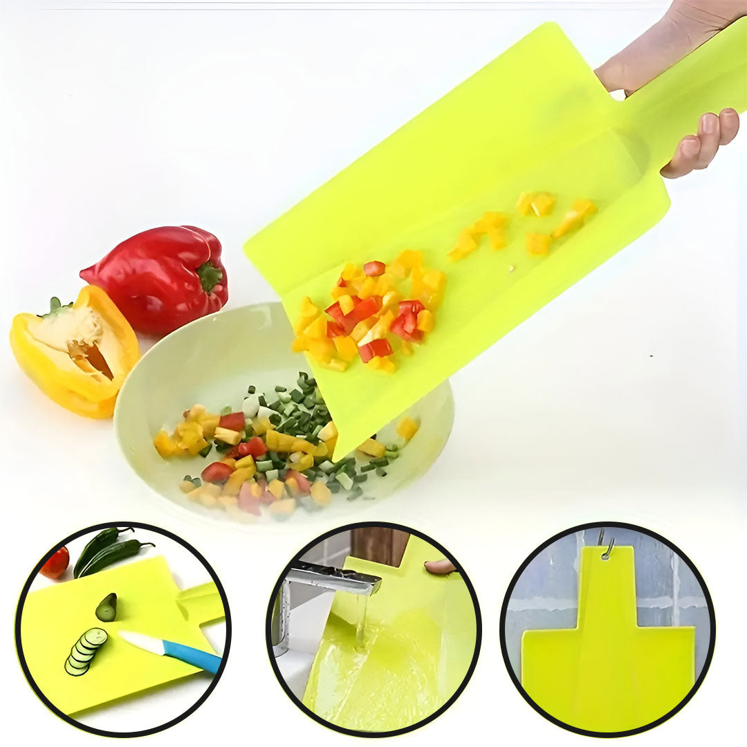 Cocina sin complicaciones con esta innovadora tabla de cortar plegable. Su diseño inteligente te permite transferir ingredientes sin que caigan al suelo