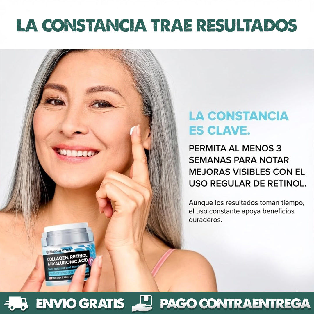 Cuando la piel no renueva bien, se nota. Esta fórmula combina retinol + humectación para suavizar la textura y ayudar a que tu cara se vea más uniforme, sin sacrificar confort.