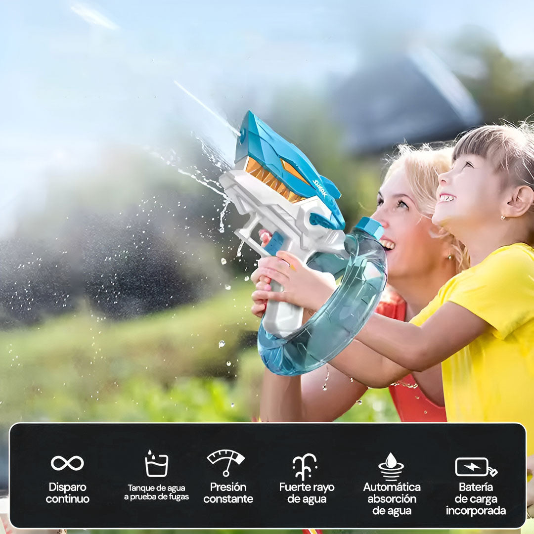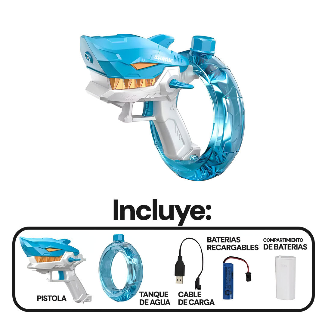 Nuestra pistola eléctrica es ligera, potente y súper práctica. Tanque circular que cuelga del brazo, carga USB y sin fugas. ¡Conviértete en el rey del verano!