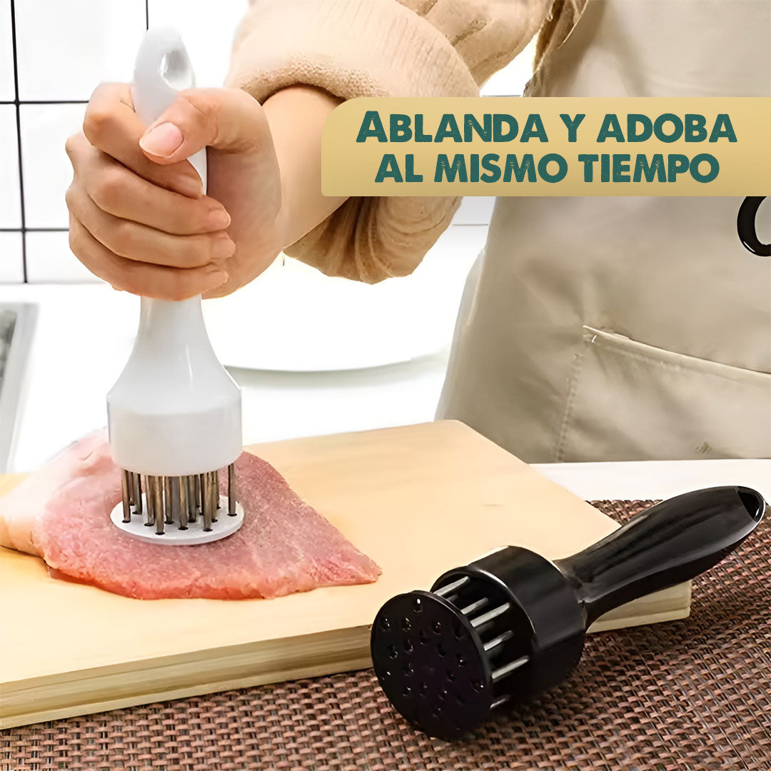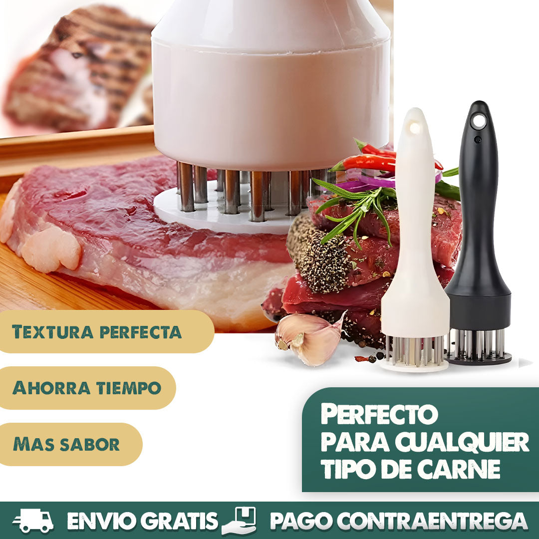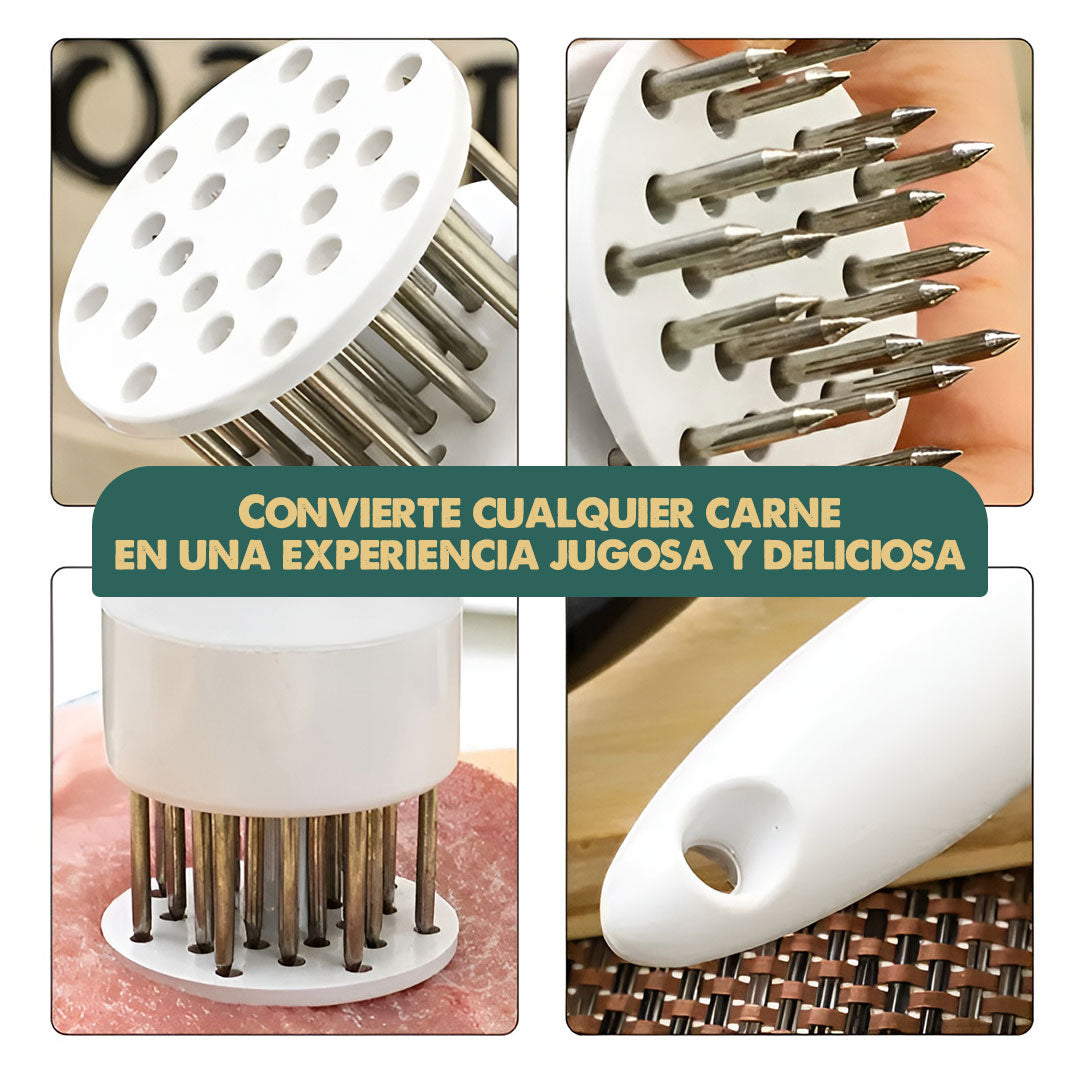 Su sistema de perforación crea canales de sabor, logrando una carne más tierna y con mejor absorción de adobos