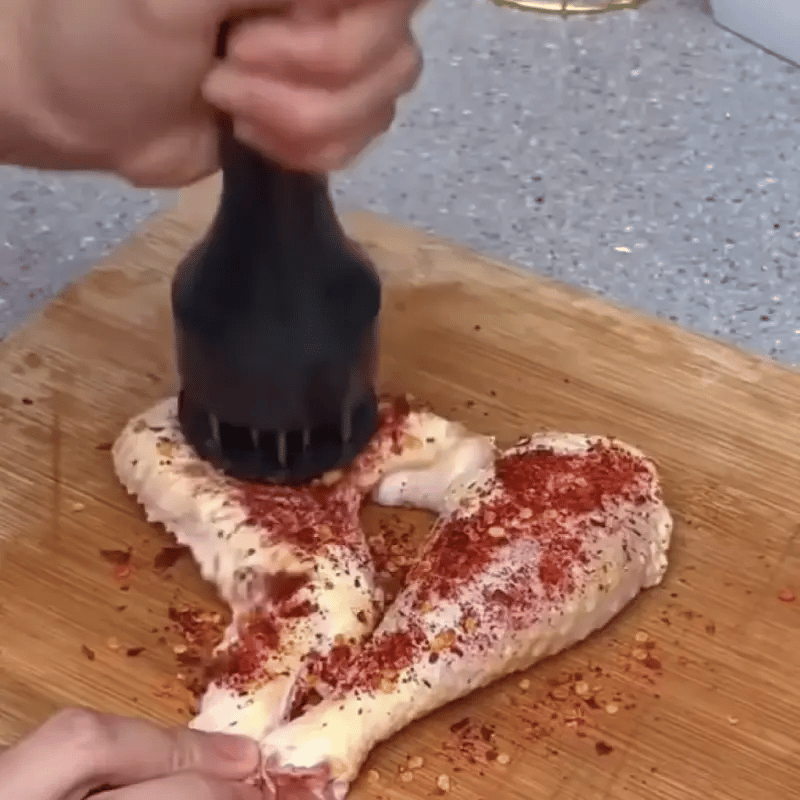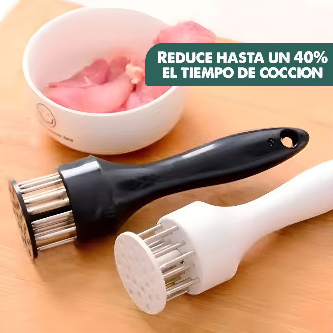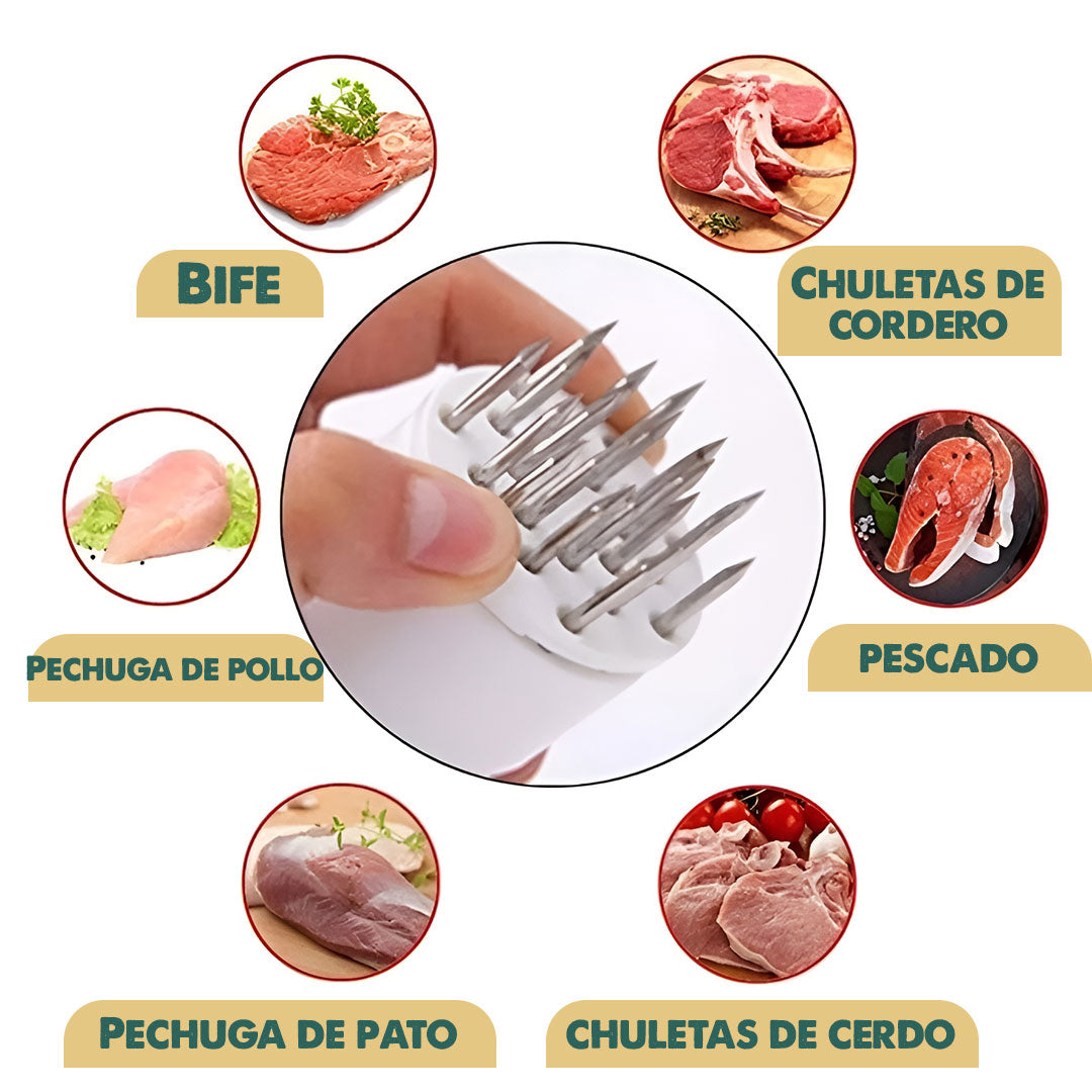 Su sistema de perforación crea canales de sabor, logrando una carne más tierna y con mejor absorción de adobos