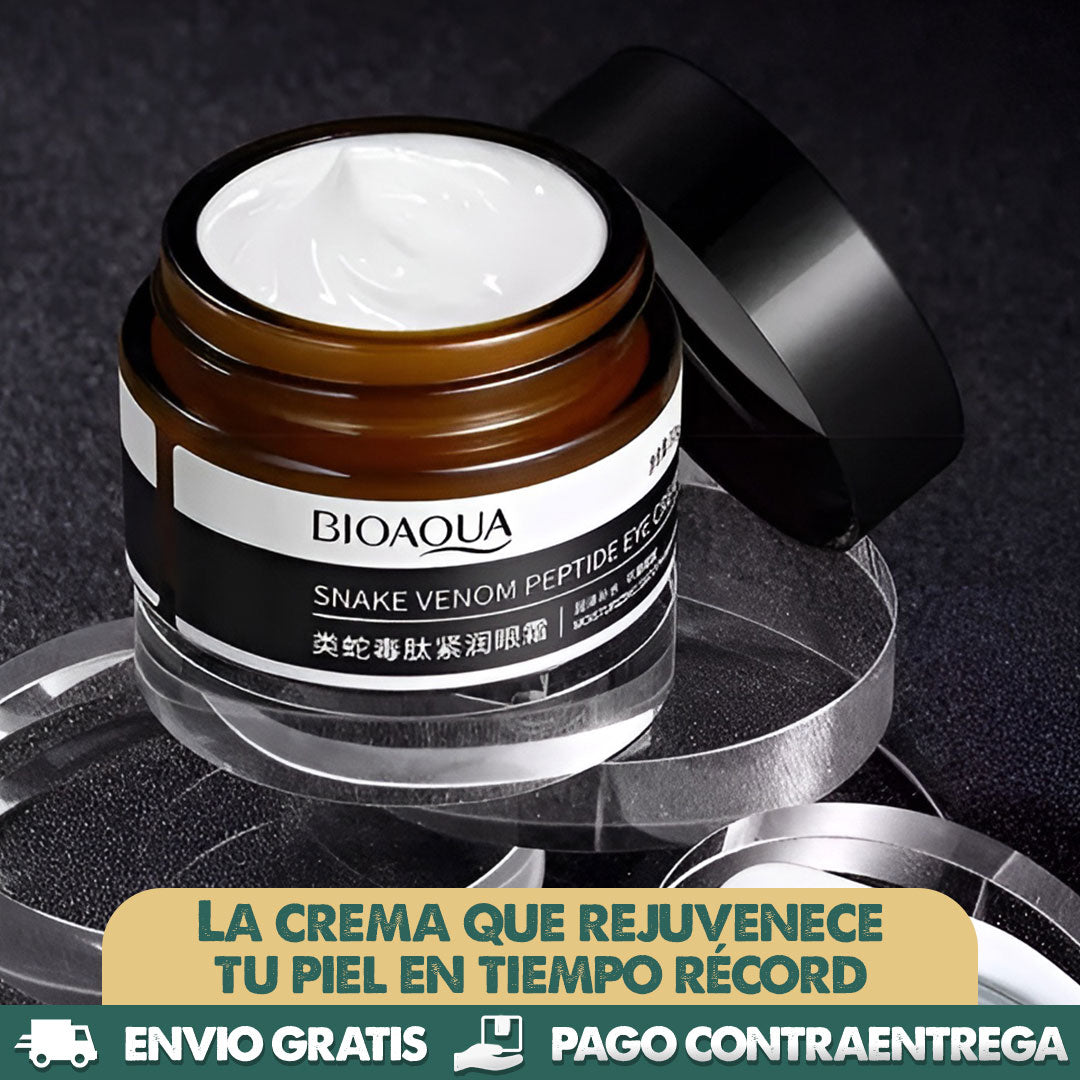 Dale a tu piel el tratamiento que merece con nuestra crema avanzada de péptidos y veneno de serpiente. Fórmula potente que reduce líneas de expresión, hidrata profundamente y elimina la hinchazón